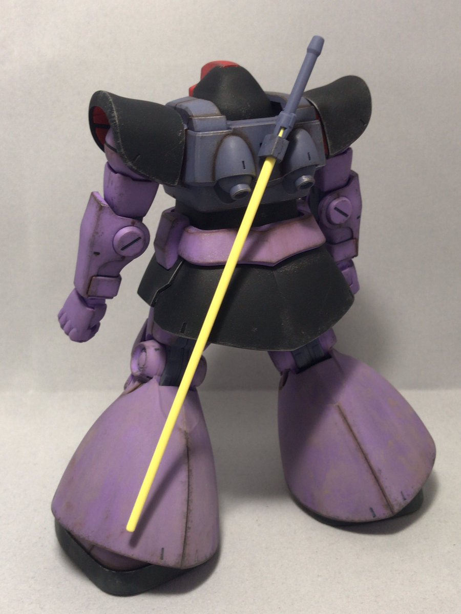 HGUCドム完成しました。 ほぼ成形色汚しです。胸部ビーム砲のみクリームイエローを乗せました。 クリアパーツとバズのシールは100均の物を使用です。 プラモのアトリエさんの動画を見て成形色汚し仕上げやりたくなったのでやってみました^_^ #ガンプラ #ガンプラの画像を貼るとRTされると聞いて