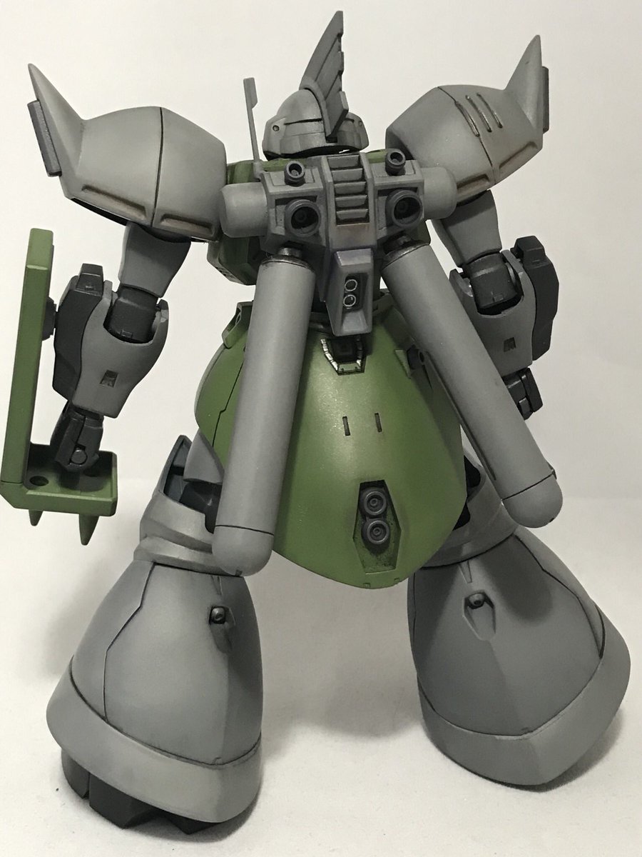 2 22 HGUCドム完成しました。 ほぼ成形色汚しです。胸部ビーム砲のみクリームイエローを乗せました。 クリアパーツとバズのシールは100均の物を使用です。 プラモのアトリエさんの動画を見て成形色汚し仕上げやりたくなったのでやってみました^_^ #ガンプラ #ガンプラの画像を貼るとRTされると聞いて 20/04/05 18:44