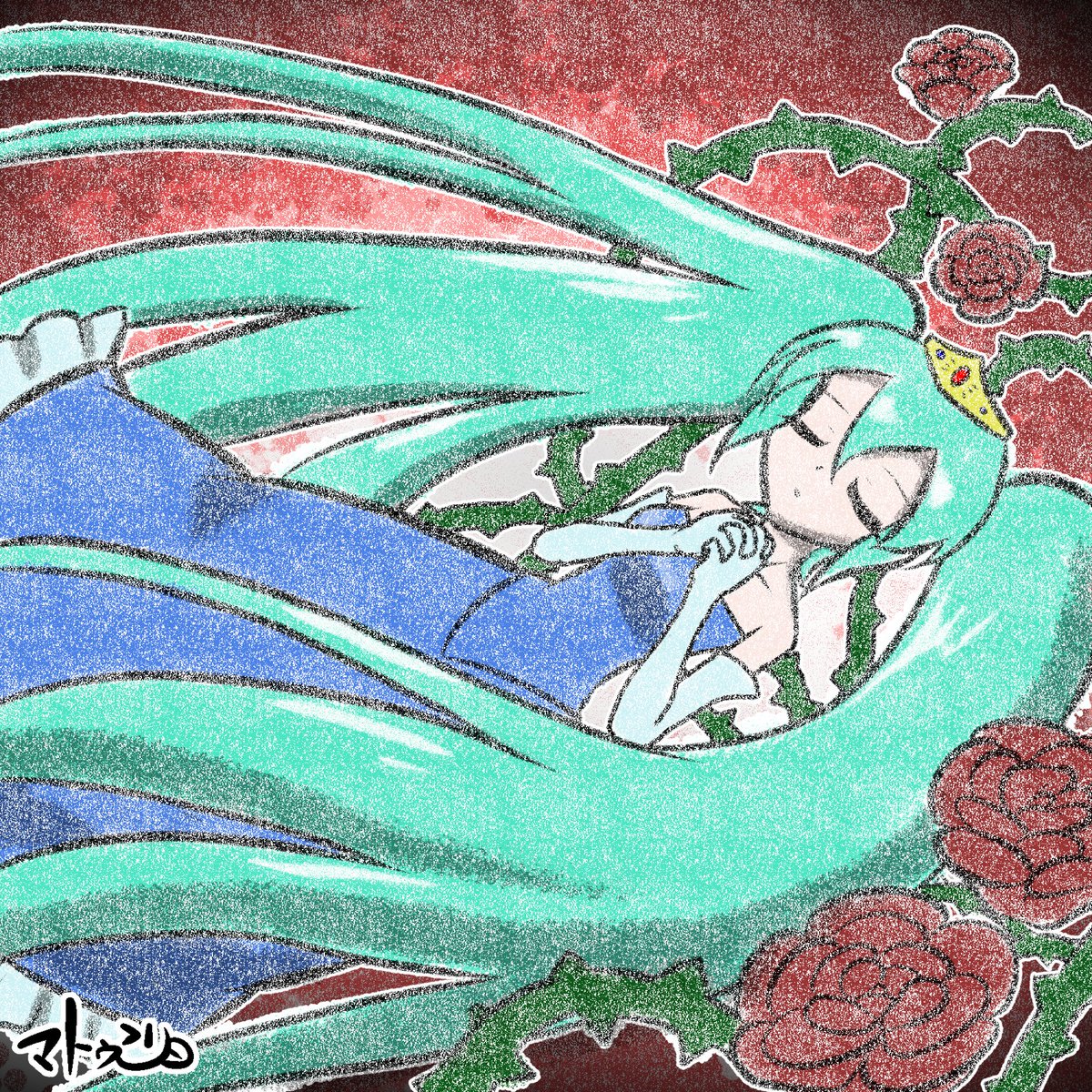 2 2 #初音ミク版深夜の真剣お絵描き60分一本勝負 お題「眠り姫」 23/05/06 21:59