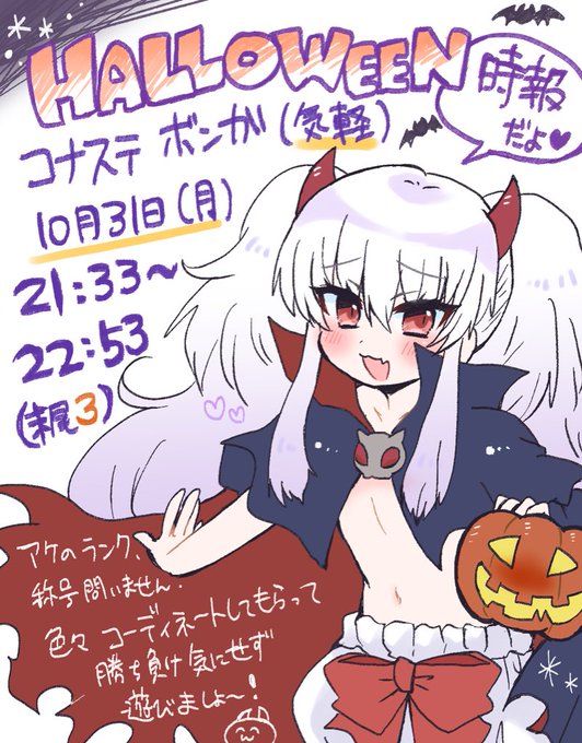 10/31 21:33〜コナステでお気軽時報します🎃🎃 1戦だけでも大歓迎ですのでよかったら一緒にマッチしましょう🍭 (煽りチャットや利敵行為はご遠慮くださいませ🙇♀️)