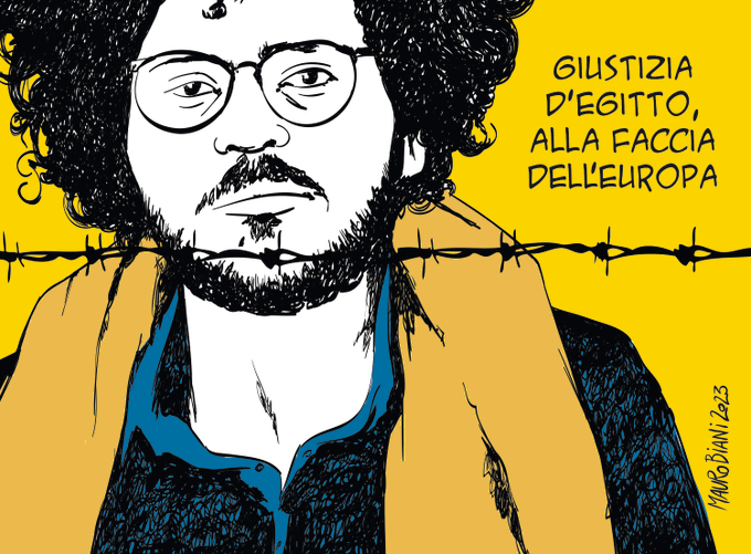 #PatrickZaki Felice per la sua liberazione Il resto è schifo. Ma intanto Patrick ti aspettiamo in Italia e a Bologna! La vignetta uscita oggi (fatta ovviamente ieri, e che confermo parola per parola) su @repubblica