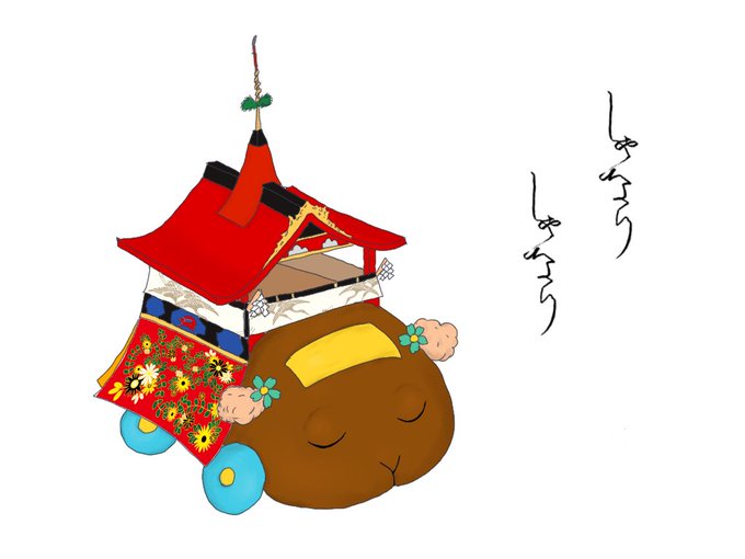 山鉾モルカー 夏のお祭りに練り歩く選ばれたモルカー 煌びやかな刺繍を纏えるからと チョコ自ら役目を名乗り出る 進む順序、人を乗せた歩き方など厳しい審査があるが チョコは難無く合格した #モルカーファンアート