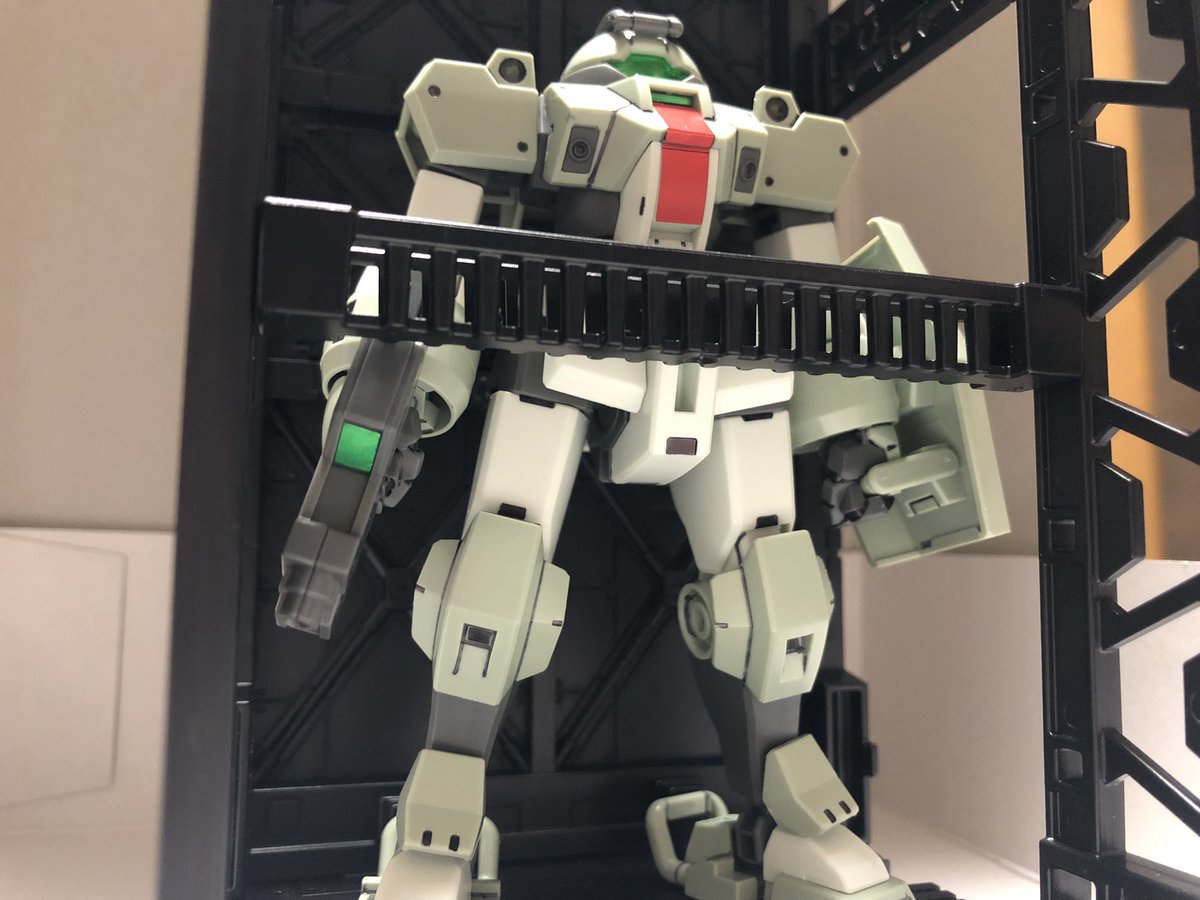 0 1 眠れなくて積みプラ消化した ニューの黒いところ別の色にしようと白吹いて放置してたのをそのまま組み立てたら最初期案のガンボーイみたいな色合いになった #ガンプラ 22/05/06 02:43
