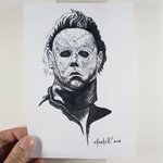 Gave this oldie a little more SHAPE 🔪 It isn't very often I'll rework an old drawing but this one had a shading issue thats been eating at me for a solid year. I finally gave in and gave it the extra few strokes it needed. @jamesjudecourtney #inktober #michaelmyers