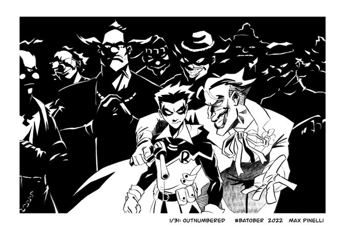 #Batober2022 1-4/31 outnumbered, ruins downpour, & submerged #batober #batman #robin #joker #batgirl #fanart #batfamily
