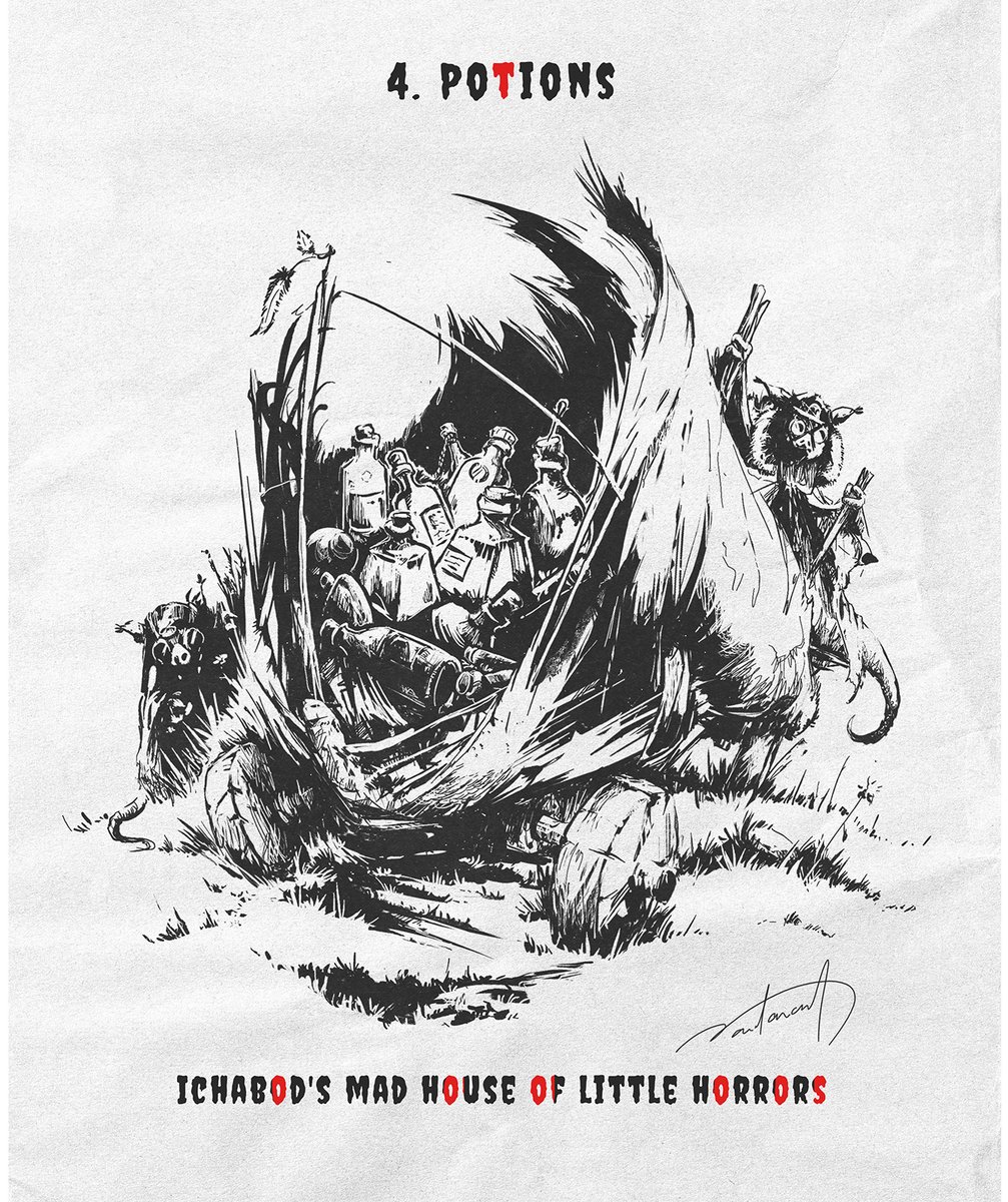 "Hallo Madam! Sire! What do you need! tell us, tell me!!! Maybe something for recovering your hair? or something to lose it completely? Maybe a bit of liquid luck? Maybe a potion for the missing love? We have cures in all colours and flavours! #inktober2021 #Inktober @prokotv