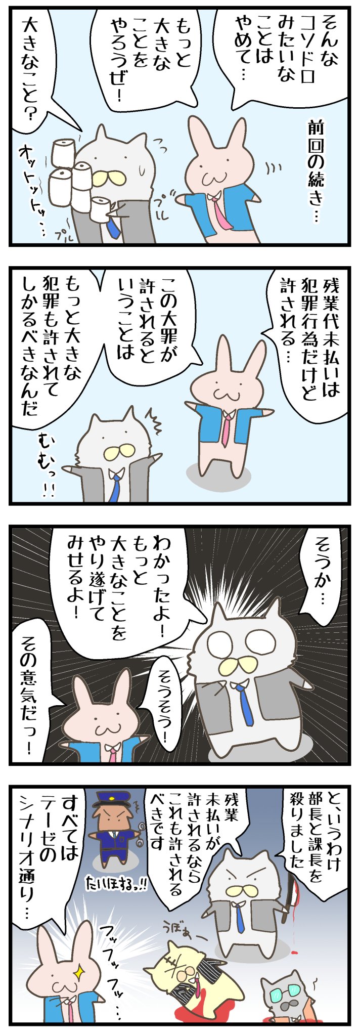 1 2 【ぬこリーマン】犯罪者 その6 #イラスト好きな人と繋がりたい #漫画が読めるハッシュタグ #4コマ漫画 #4コママンガ #マンガ #漫画 #社畜 #サラリーマン #ブラック企業 #ねこ #猫 #エッセイコミック 23/03/31 23:48