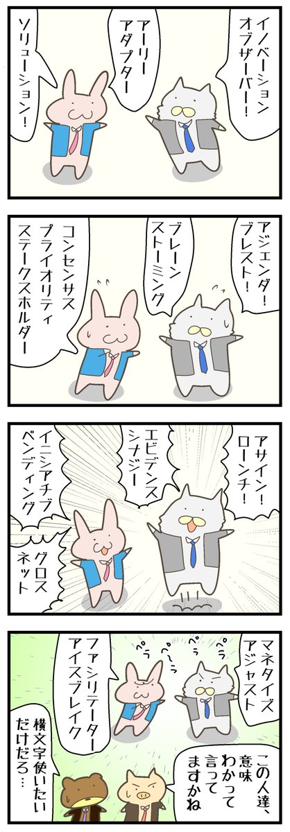 【ぬこリーマン】横文字 #イラスト #漫画が読めるハッシュタグ #4コマ漫画 #4コママンガ #マンガ #漫画 #社畜 #サラリーマン #ブラック企業 #ねこ #猫 #エッセイコミック