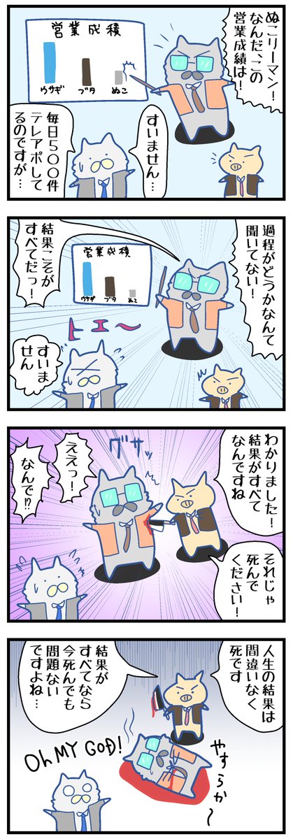 1 0 【ぬこリーマン】結果がすべてなら… #イラスト #漫画が読めるハッシュタグ #4コマ漫画 #4コママンガ #マンガ #漫画 #社畜 #サラリーマン #ブラック企業 #ねこ #猫 #エッセイコミック 23/03/11 22:47