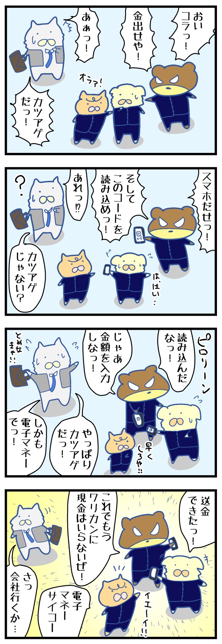 【ぬこリーマン】カツアゲ #イラスト #漫画が読めるハッシュタグ #4コマ漫画 #4コママンガ #マンガ #漫画 #社畜 #サラリーマン #ブラック企業 #ねこ #猫 #エッセイコミック