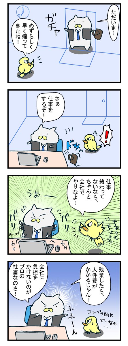 1 3 【ぬこリーマン】早あがり #イラスト #漫画が読めるハッシュタグ #4コマ漫画 #4コママンガ #マンガ #漫画 #社畜 #サラリーマン #ブラック企業 #ねこ #猫 #エッセイコミック 23/03/14 23:13