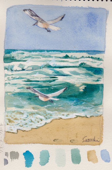 0 6 <練習>写真見て練習 海鳥 白をなるべく残してマスキング液やガッシュを使わず表現の練習 #水彩画 #水彩 #watercolor 21/11/07 20:26