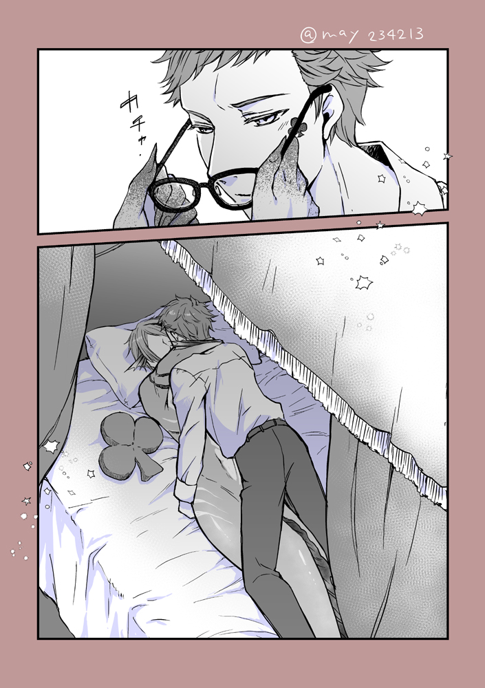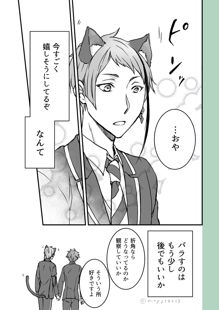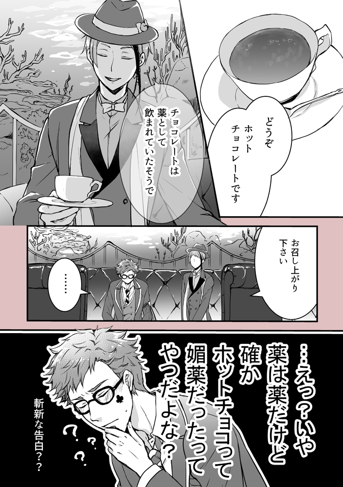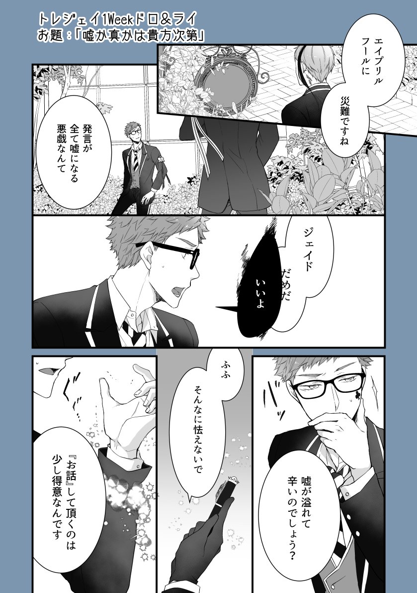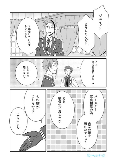 こちらのうさとれさん本ファンアート&ゲストで漫画描かせて頂いた記念です。トレジェイの距離感が違っていて面白いな…!と思いました。塩さのある距離感良き…スコーンのシーン🐰♣️さん可愛くておすすめです🙌 twitter.com/yuuki_touken/s…