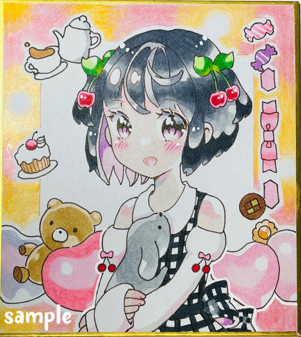 イラスト描きました🎨 【*さくらんぼてぃーたいむ*】 もうすぐ旬ですよね。 ・・・🍒食べたい🤤 メルカリ販売中です♪ プロフィールの リンクよりどうぞ🙇♀️ #手描きイラスト #みんなで楽しむTwitter展覧会