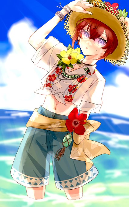 #ツイステファンアート #twstファンアート スイスイ🐬🌺🌴🕶🍻✨🌹