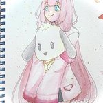 5 18 #描くンゴ ポチャッコポチャッコっ! ンゴちゃんの影響でクレーンゲームでポチャッコの大きいぬいぐるみを取ったので持たせてみました 22/04/25 23:19