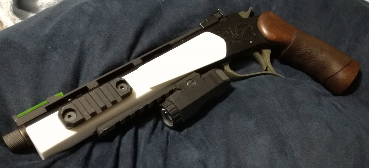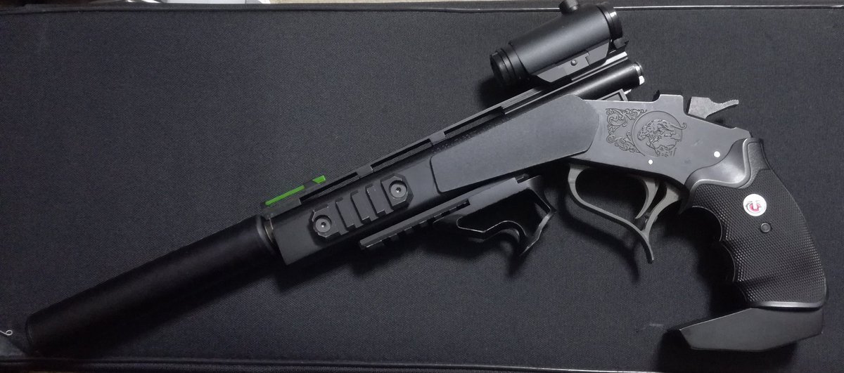 #このタグを見た人はラフ造型とその完成品を見せる 近代化改修コンテンダー 1:ネットで見たリブ載せコンテンダーを再現したい 2:ファイバーサイトにしたらやたらスポーティになった…もうフォアエンドも近代化改修するしかねぇ 3:ここまで来るとグリップも弄るか 4:完成