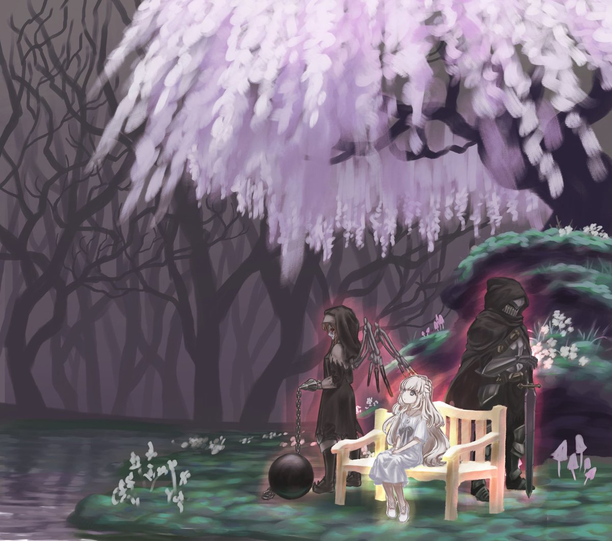 ざっくり色付けて様子見。明暗の印象が良くないので調整しつつ清書します。 #イラスト練習中 #ENDERLILIES