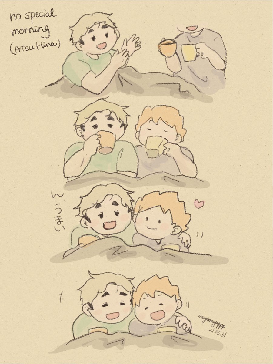 取り急ぎ1年記念ラクガキ🎂🤞侑日よ、楽しい一年をありがとう!!今年も楽しむぞい!!!(昼寝の寝かしつけで寝落ちたことにして描きました🤫😪2年目もきっとこんな感じですね🥷)