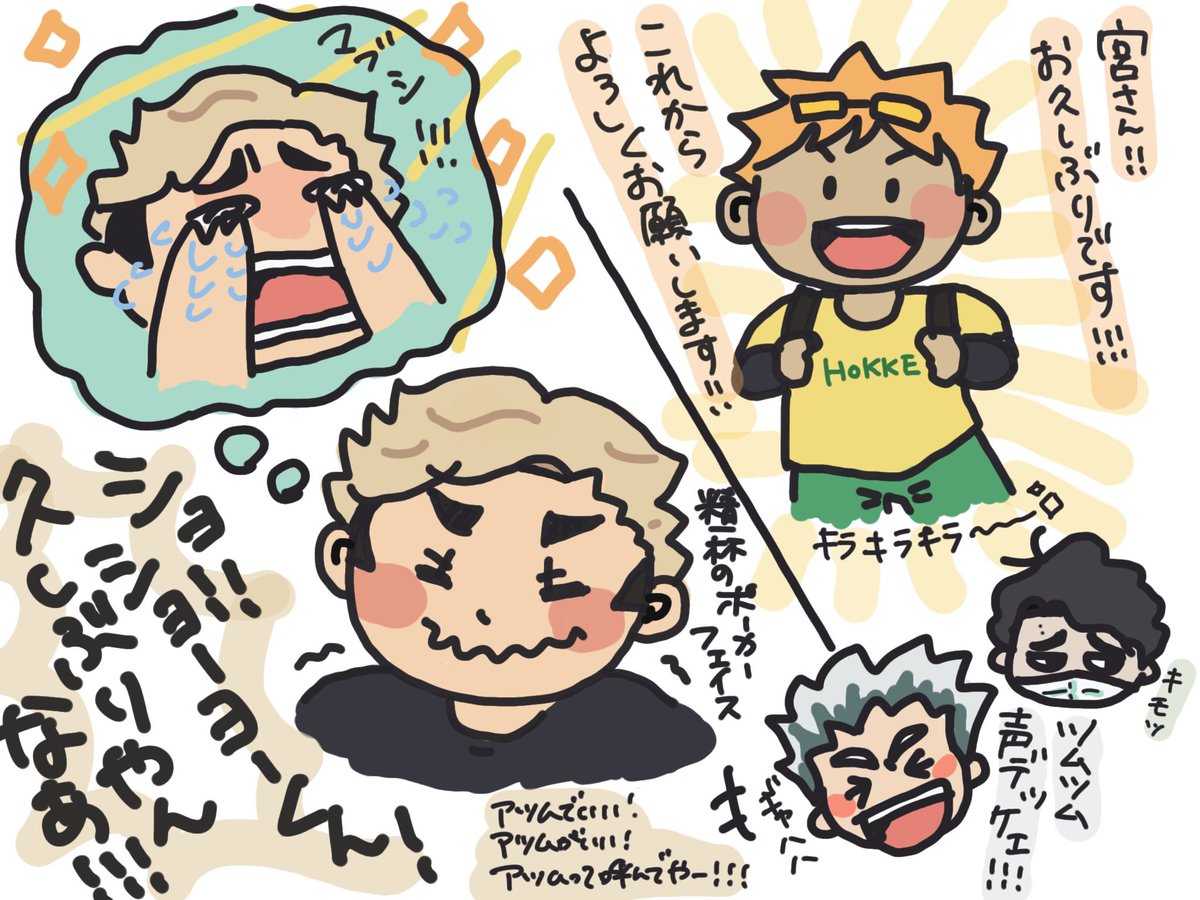 今朝のラクガキ。MSBY入り時。臣くん初描きでしたね。侑→日