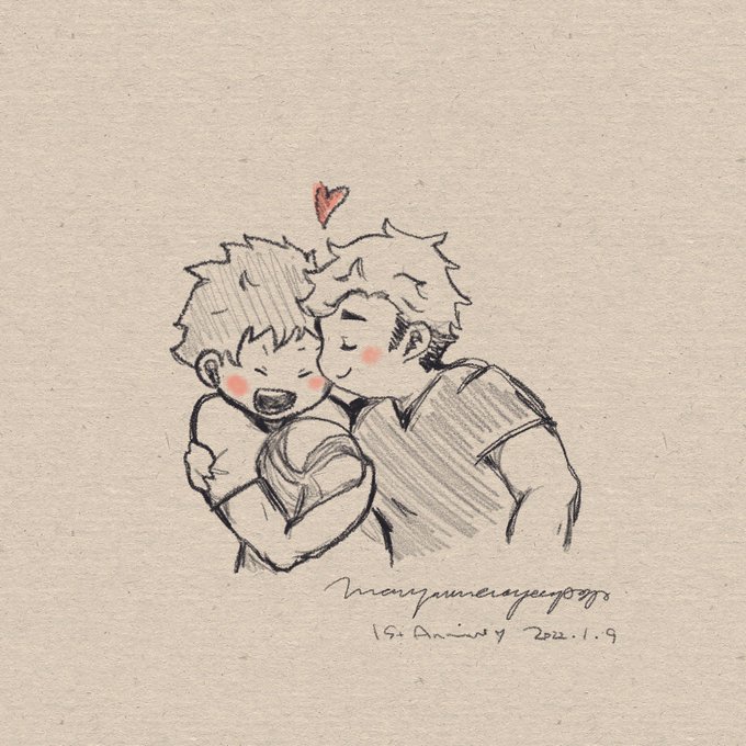44 225 取り急ぎ1年記念ラクガキ🎂🤞侑日よ、楽しい一年をありがとう!!今年も楽しむぞい!!!(昼寝の寝かしつけで寝落ちたことにして描きました🤫😪2年目もきっとこんな感じですね🥷) 22/01/09 16:19