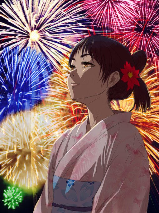 今日は #花火の日 ということなので、描いたことのない花火絵に挑戦したけど花火を描いたのはアイビスさんだ!! 女の子はフリクリのニナモリ。中学生になって再び髪を伸ばした設定。ナオタを誘っておきながら花火ばかり見ている、そんなニナモリ。 #お絵描き好きな人と繋がりたい