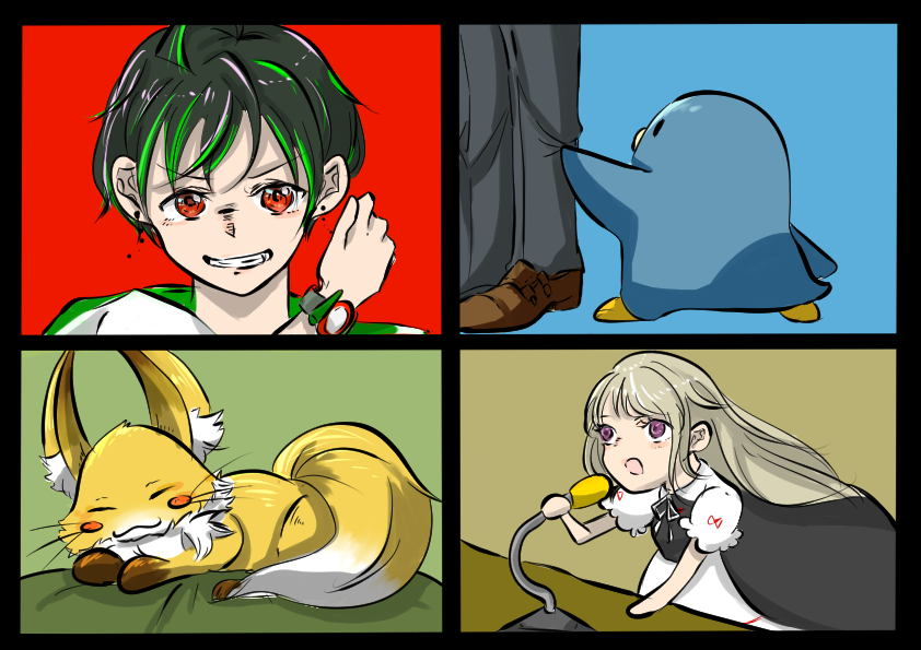 56 544 #たけぉぇかき #絵ルコン #まおしいらすと #テラゾーン この4匹、仲良く積み重なってはいるが 自分が一番可愛いと思っている 23/02/27 22:09