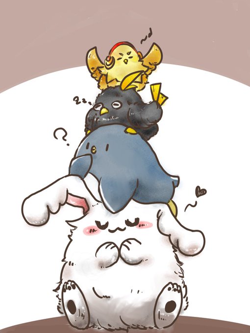 #たけぉぇかき #絵ルコン #まおしいらすと #テラゾーン この4匹、仲良く積み重なってはいるが 自分が一番可愛いと思っている