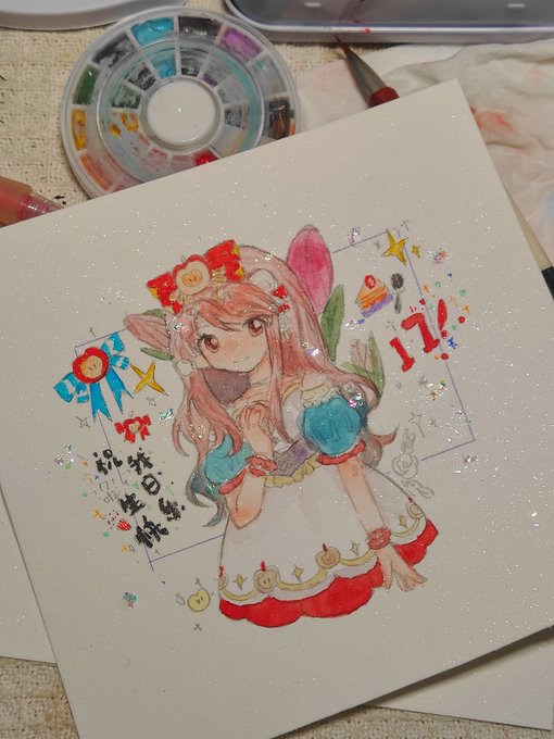 0 2 给自己画了生日礼物~ 祝我17岁生日快乐啦🥳🥳🥳🍰🍰🍰🍰🍰🍰 #drawing #draw #Artists #ArtistOnTwitter #水彩画 #水彩 #手绘 #绘画 #myart #水彩絵の具 22/09/22 23:38
