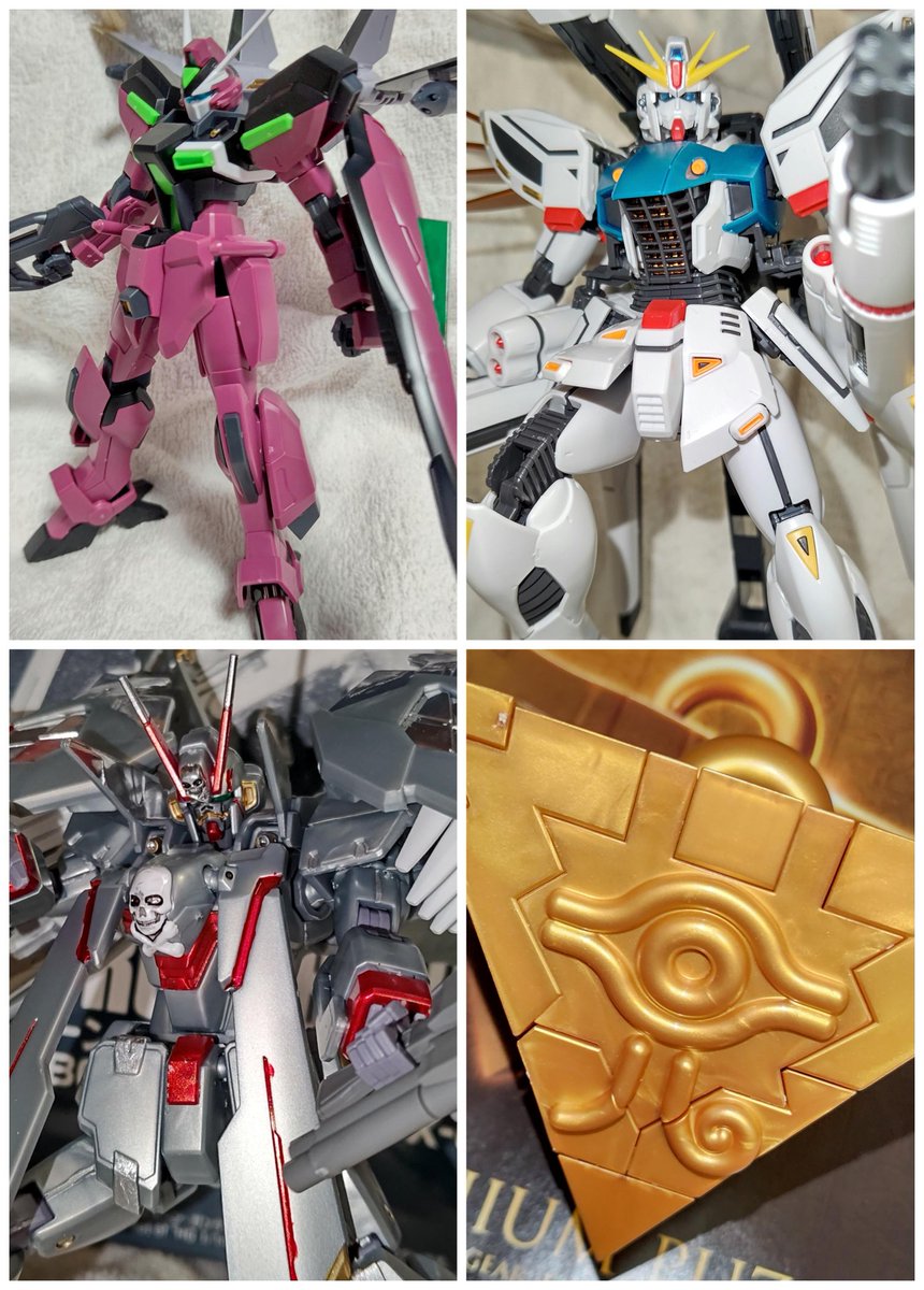 X3は完成しないのでこれが今月完成したプラモ達! 郭淮ガンダムに始まり、X0フルクロス、F91ツインヴェスパー、ウィンダム(ネオ機)、ナイチンゲールα、千年パズル 郭淮ガンダムは自分史上最高の作品でした。 #ガンプラ #今月作ったプラモ晒そうぜ