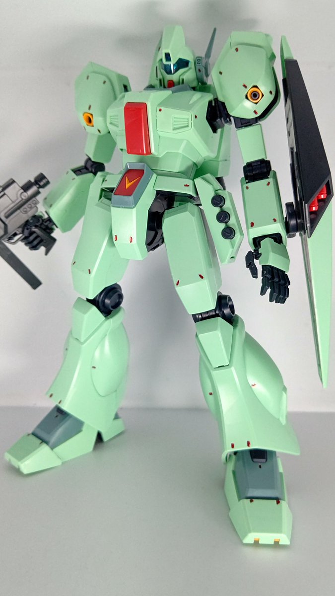 HGジェガン ノーマルタイプ(F91バージョン)完成です。 パッと見逆シャアのジェガンと何が違うかわからなかったですw 差分が脹脛部分、バックパック、シールド、ビームライフルでした。 これあと別タイプで2つあるのか… #ガンプラ #ガンプラの画像貼るとRTされると聞いて #大戦模型部