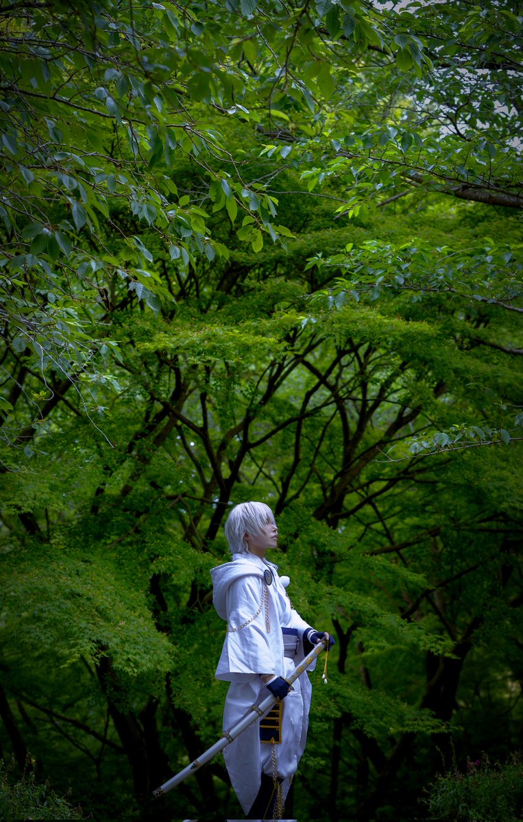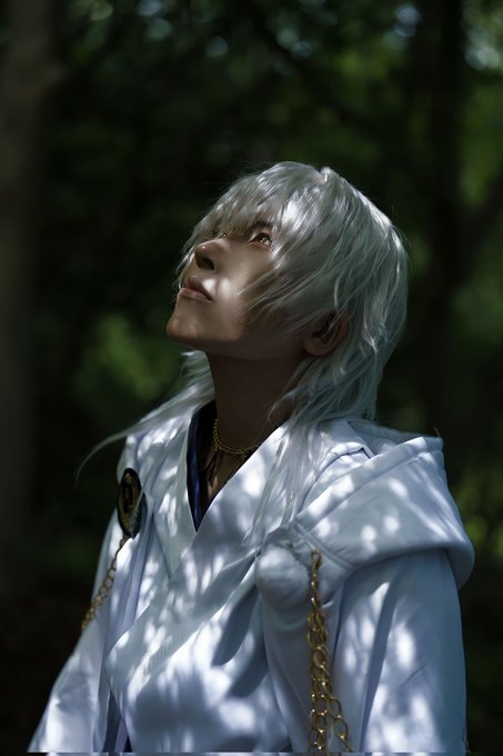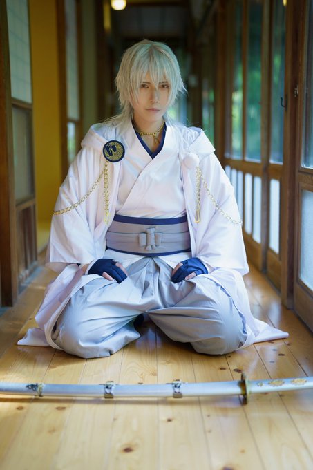 コスプレ/刀剣乱舞 いっぱい食べる君が好き〜♬ これは、確か桑名(椿さん)からもらったパンを食べてるとこを ノブさんに撮ってもらった1枚📸 photo:ノブさん 鶴丸国永:縁 #0422しらゆき本丸