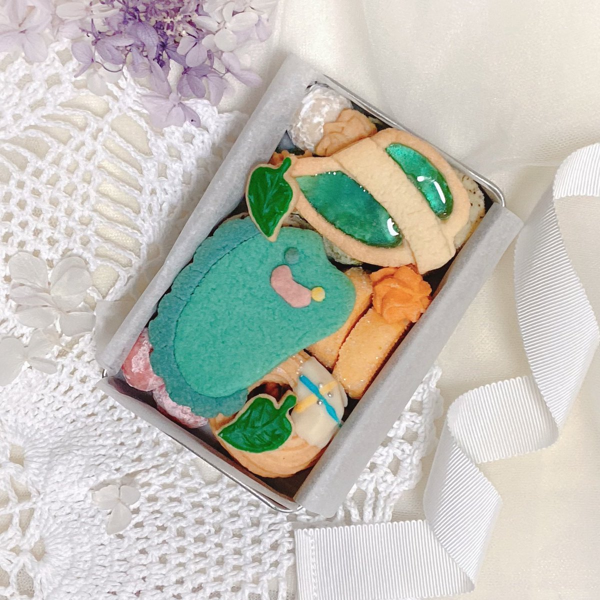 🦈🐙🐬イベントSRのクッキー缶🍪 🦈 アウトドア・ウェア🍃 🐙 スケアリー・ドレス 🍬 🐬 ビーンズ・カモ 🥜 それぞれのカード、イベントを缶に詰めました✨詳細はツリーへ… #ツイステクッキー缶企画