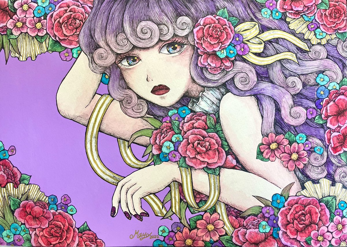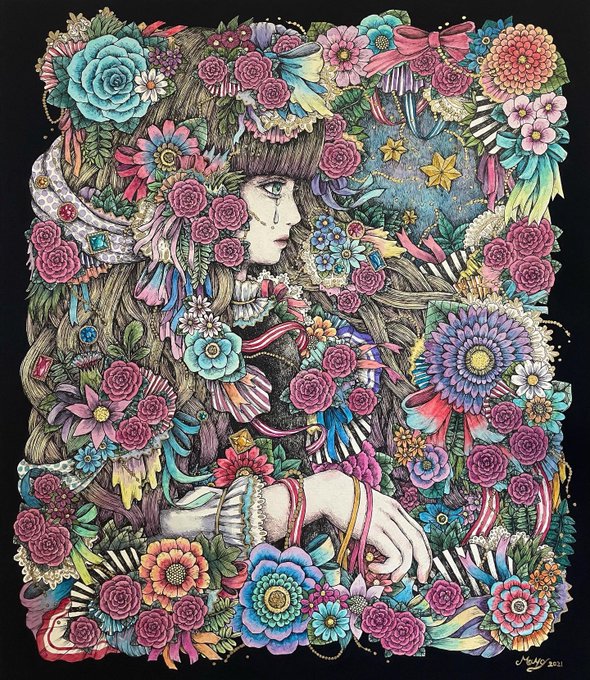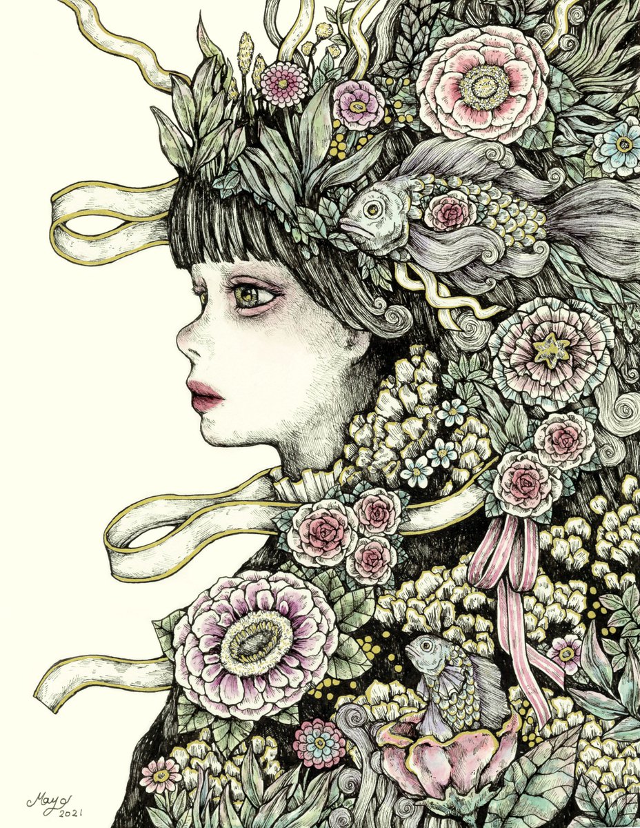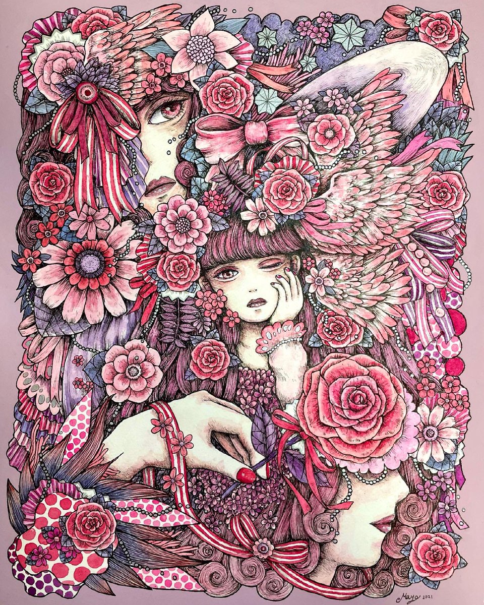 9 46 「charm×charm」 ここ最近で1番気に入ってる作品💐 #ペン画 #透明水彩 #illustration #ar 22/03/18 18:23
