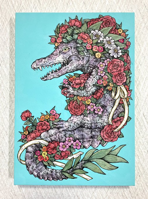 鰐「お花だいすき」 #ペン画 #透明水彩 #illustration #ar