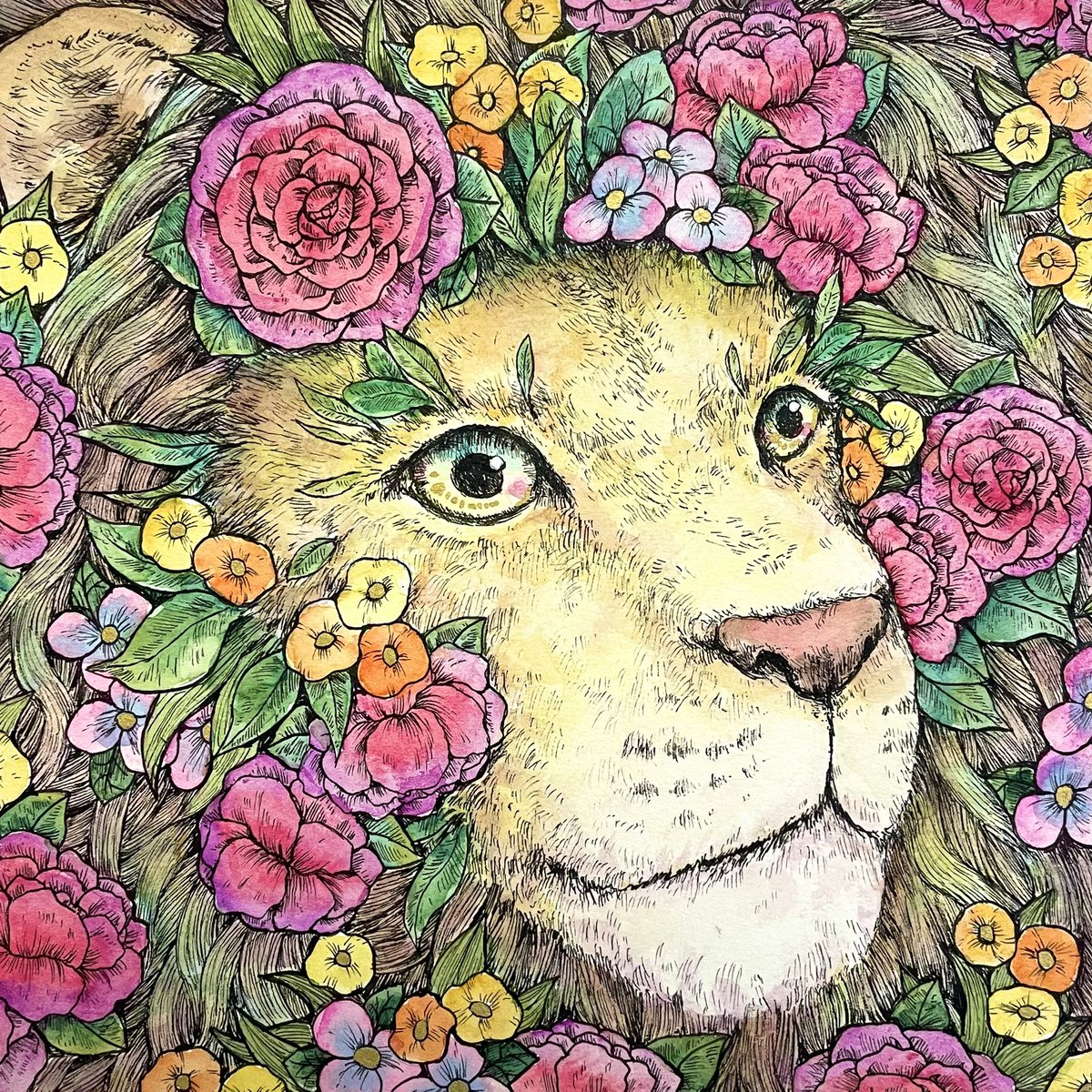 0 10 「優しいライオン」 #ペン画 #透明水彩 #illustration #ar 22/03/26 10:35