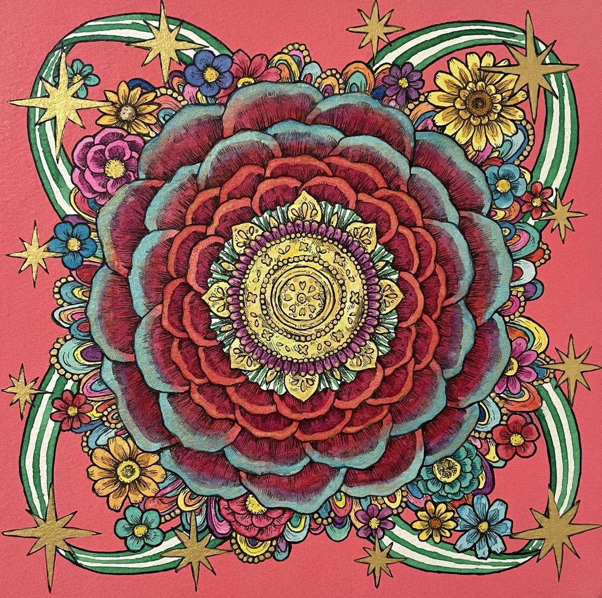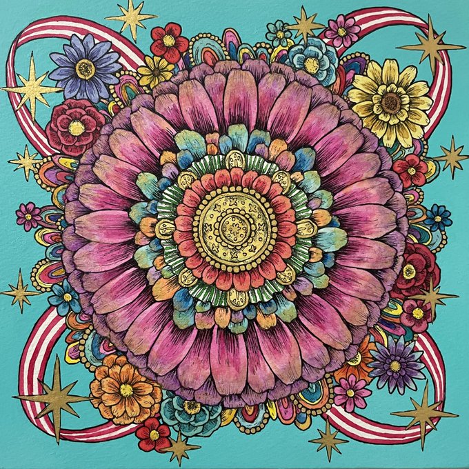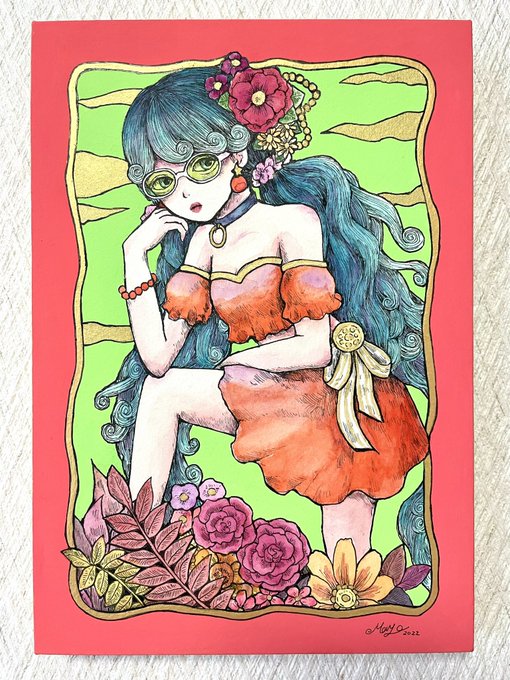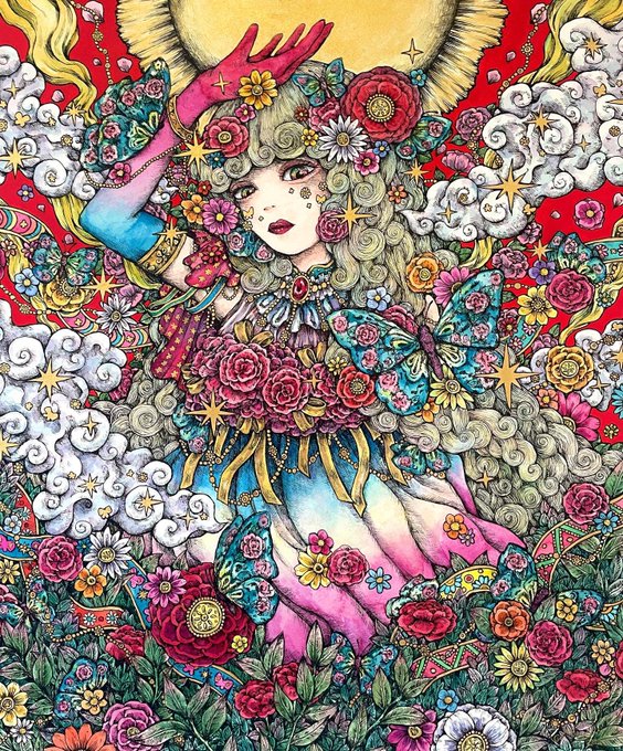 2 5 現在個展にて展示中です。 🌹「New beginning」 🌼「SUN」 #ペン画 #透明水彩 #illustration #art 22/04/29 18:00