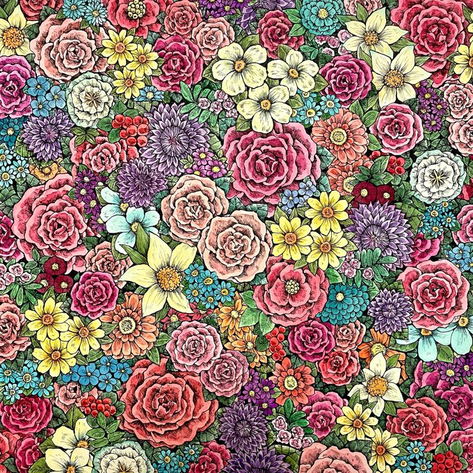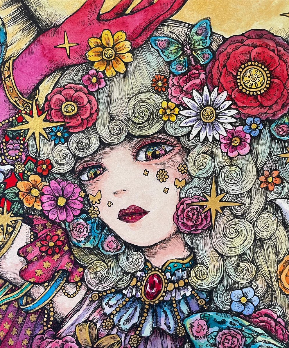 1 8 🌷「輝く華」 🌹「煌く華」 #ペン画 #透明水彩 #illustration #art #exhibition 22/10/12 19:36