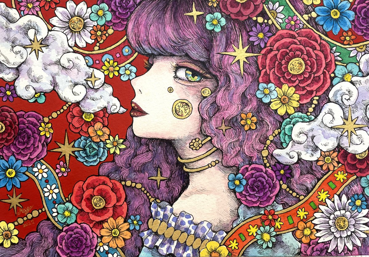 「charm×charm」 ここ最近で1番気に入ってる作品💐 #ペン画 #透明水彩 #illustration #ar