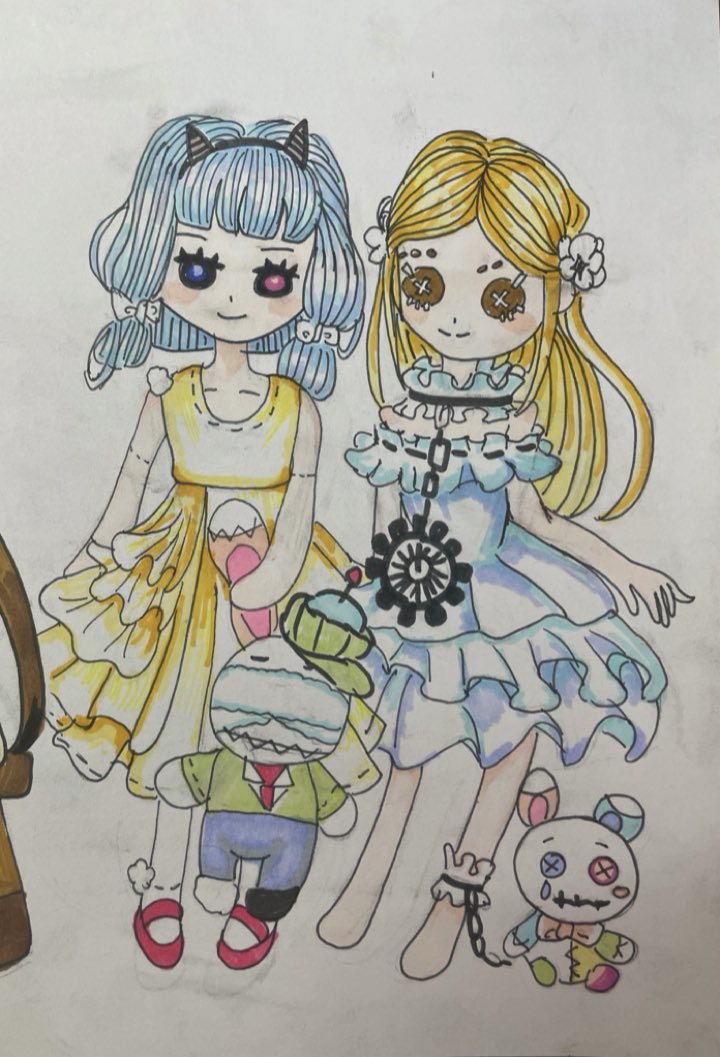 エマちゃん誕生日おめでとう! レオパパ記念日おめでとう!! ~昔作ったエマちゃんとリア友の写真を添えて~ レオパパとお人形一緒に作りたい... #第五人格イラスト #エマ・ウッズ誕生祭2021 #レオ・ベイカー記念日2021