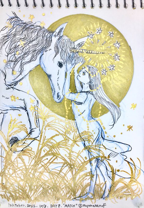 #kuretake_inktober2022 #kuretakeinktober2022_giveaway #inktober 9日間参加できました!完走してみたい。お題難しかったけど考えるの楽しかったです。 使用画材 pigmaミリペン 0.05 呉竹 金筆ペン 呉竹 白筆ペン uniball signo 金