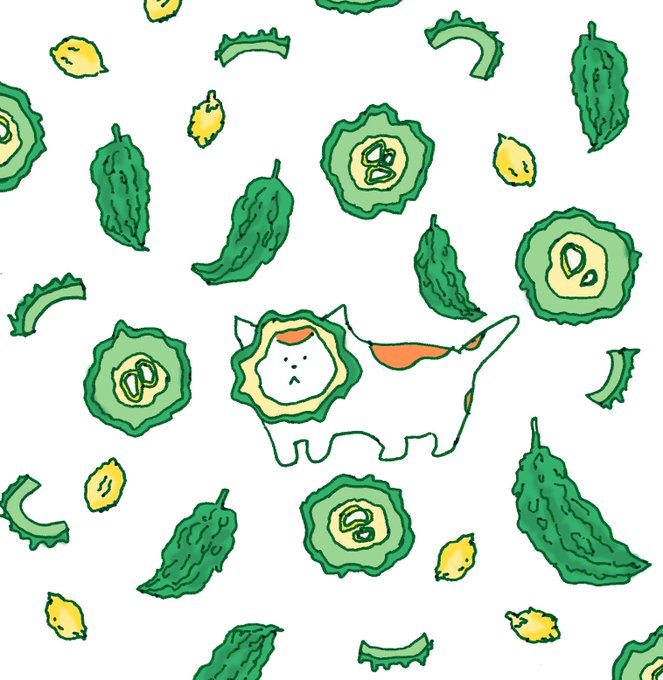 ゴーヤ猫🍀🌱 #イラスト #手描き #癒しの輪を広げよう #野菜