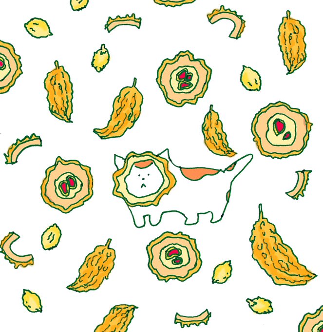 黄色ゴーヤ猫🐱🟡 #イラスト #手描き