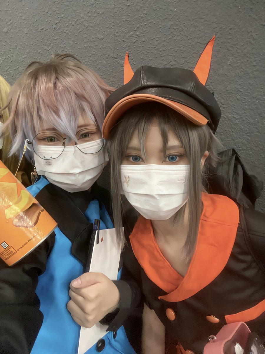 [Cosplay photos] Some days ago, Mysta, Shoto and I went to play together. We also took the purikura, that was so fun.The most happy thing, I won the game, even Mysta and Shoto played together. Mysta🧡 @AErenSH817 Shoto🗡 @Yui02229 #IkeEveland #MystaRias #shxtou #cosplay