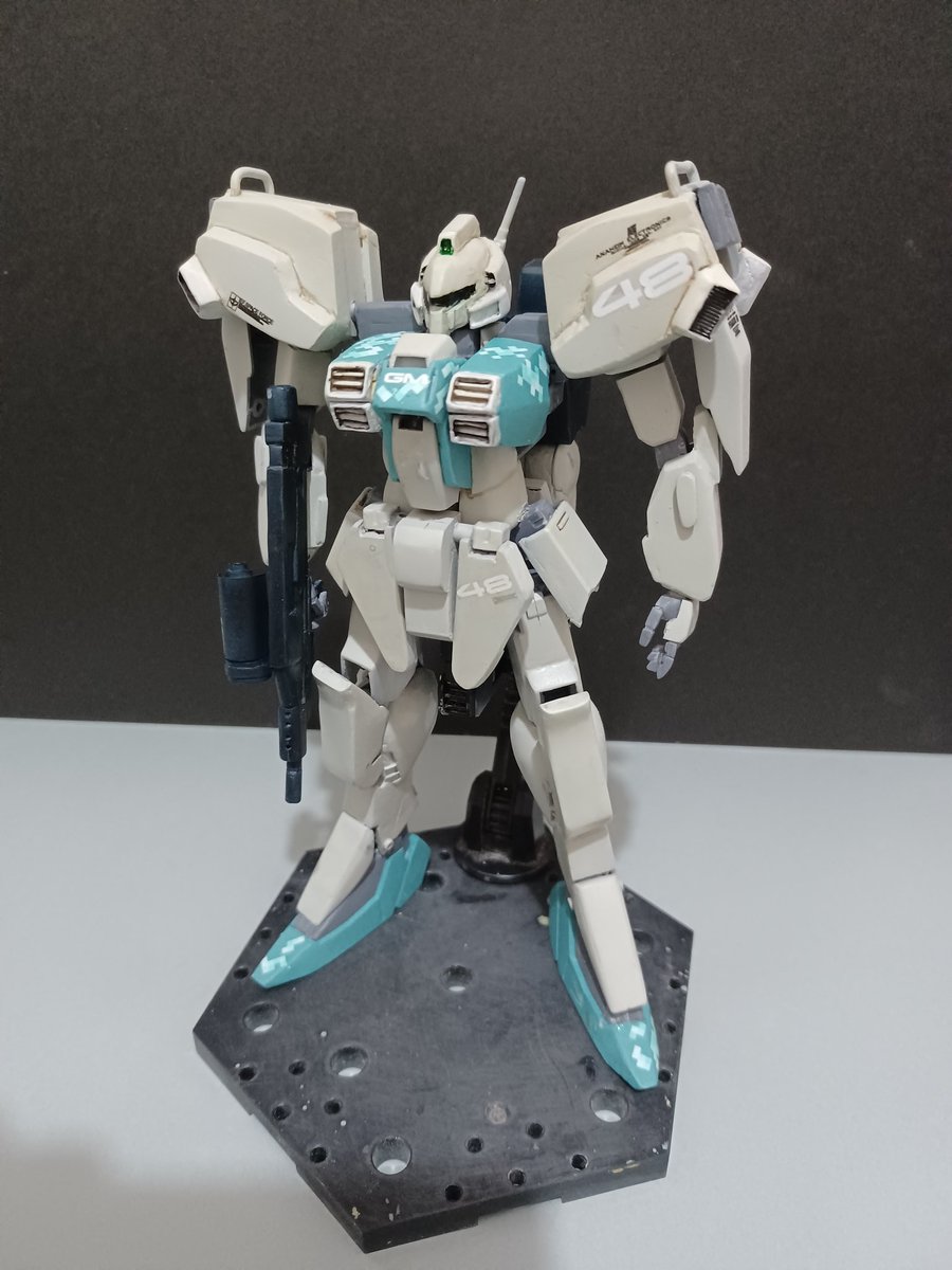 ヌーベルジムⅢ完成しました! 今回の製作期間は3週間程度 コレで去年からボチボチ造ってたタクスフォースαのモビルスーツ部隊がコンプリート出来ました。 次はニューディサイズ? #ガンプラ #ガンプラの画像貼るとRTされると聞いて ガンダムセンチネル
