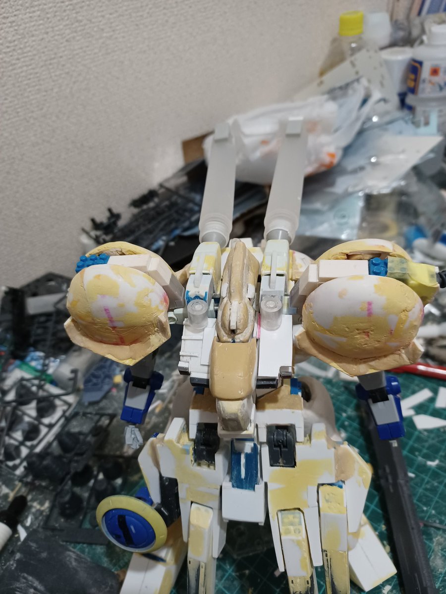 本日の作業 ほぼ1日弄ってた割にあんまり変わってない。脚とボディと頭を修正すれば見えてくるかと思ったけど、まだスカスカのバックパックとペラペラの腕部とか相当弄れる(楽しめる)わ😆 #旧キット #ガンプラの画像を貼るとRTされると聞いて