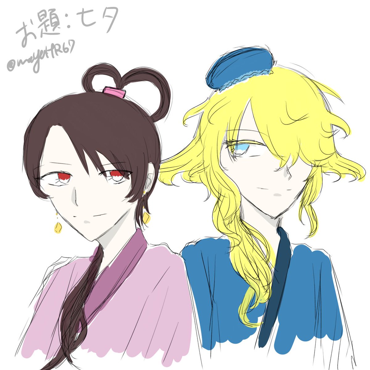 空と花火描くの難しすぎて途中で止めようかと思った…よかったできた。 ちょうど1時間くらいで完成しました。 ⚠️また自己都合(性癖)で清光が女子です @norikiyosaijiki #則清歳時記_深夜の真剣60分一本勝負