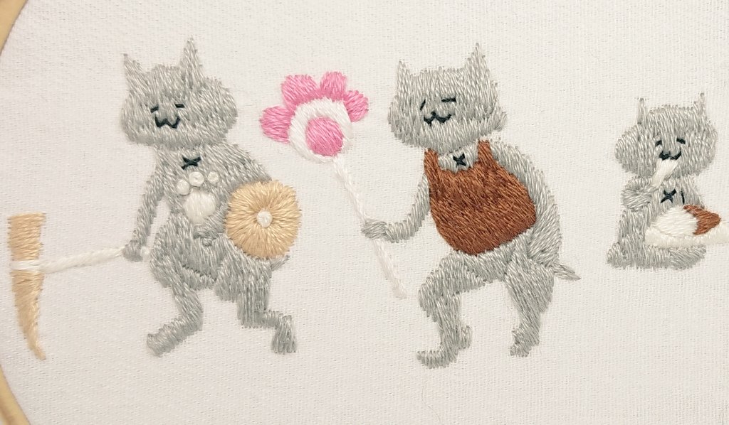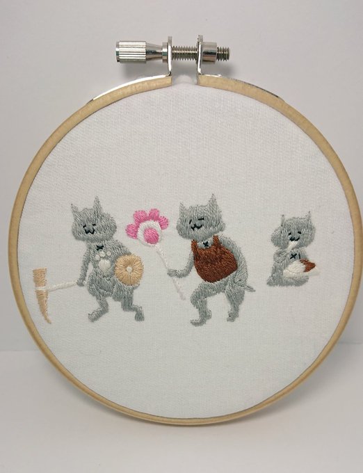 22 114 仲良くケンカしな #カレー沢薫 #ファンアート #刺繍 #おキャット様 #おマウス様 21/03/28 00:54