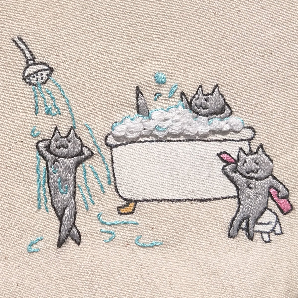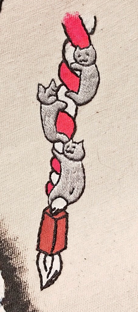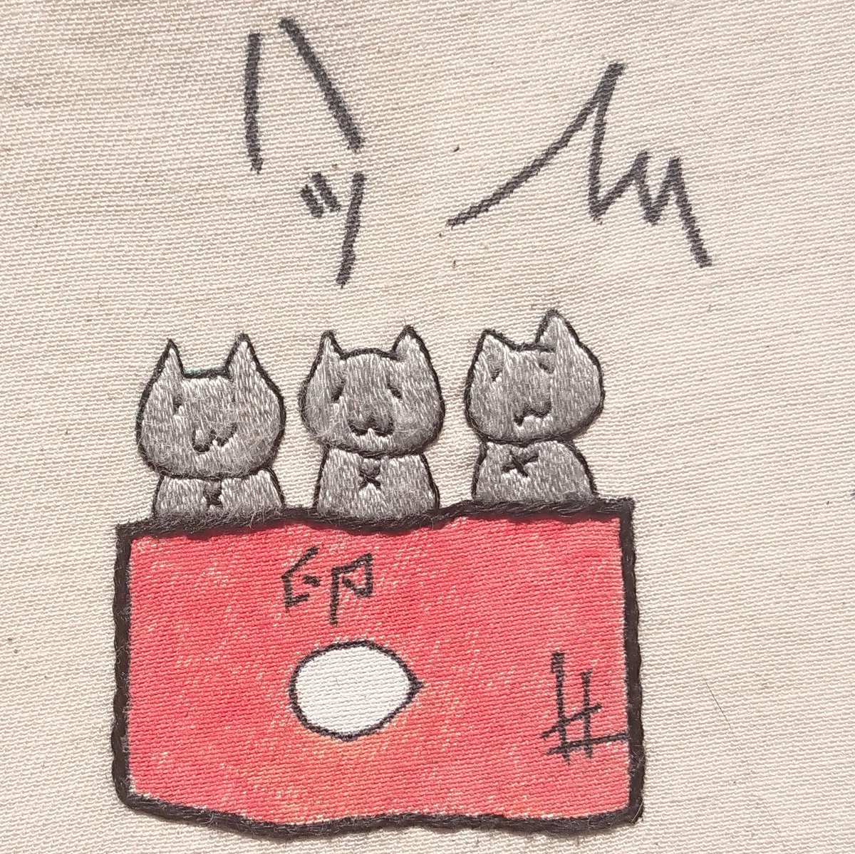 11 43 その3:物心ついたにゃトート個別で(リクエストありがとうございます) #関羽祭 #トートバック #刺繍 #アクリル絵の具 #リクエスト刺繍 21/04/25 14:52