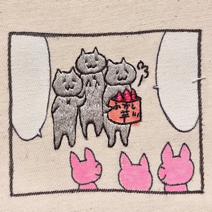 仲良くケンカしな #カレー沢薫 #ファンアート #刺繍 #おキャット様 #おマウス様